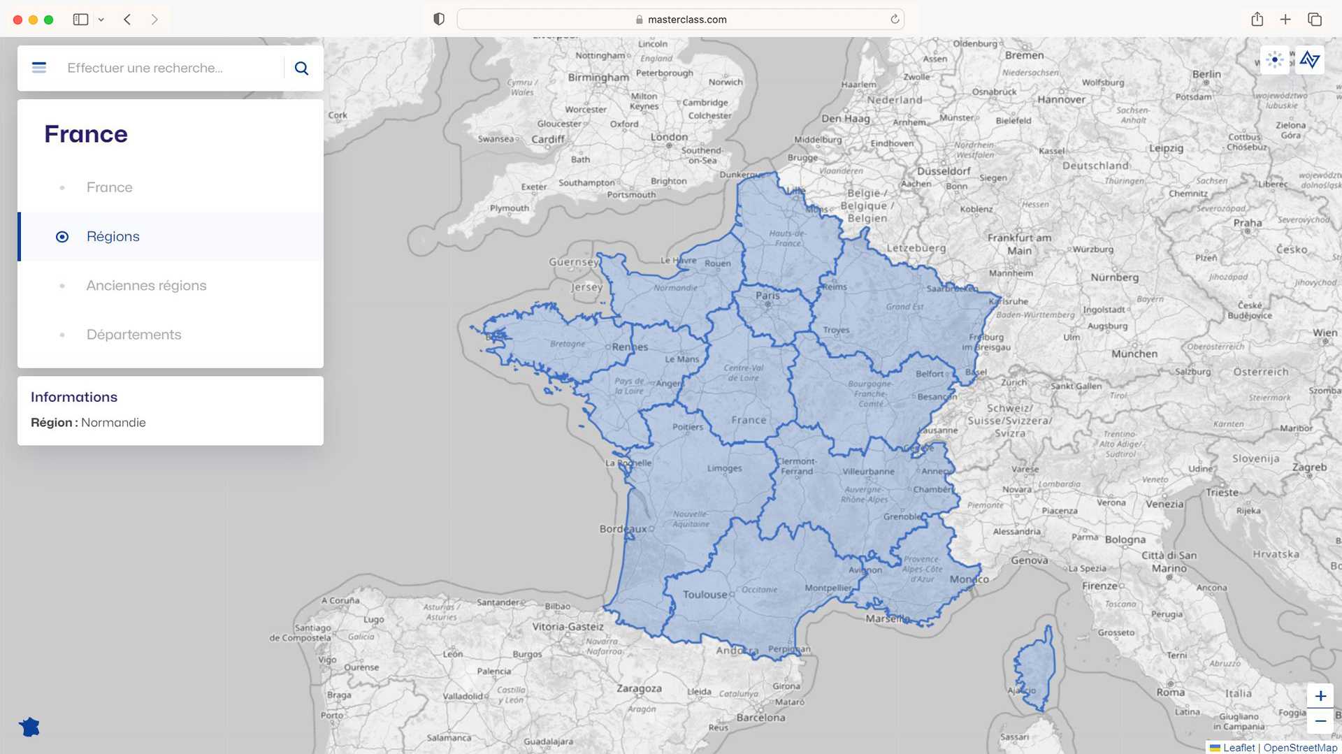 Cartes des régions, départements, arrondissements, cantons et communes de France au format GeoJSON à partir des données publiées par l'IGN et l'INSEE. Cette application permet de rechercher et visualiser l'ensemble des découpages administratifs de France.